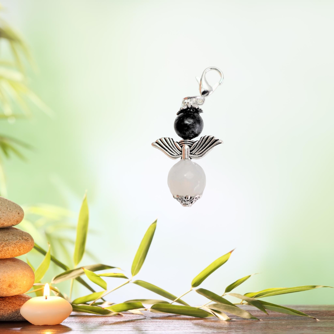 De onderkant van deze Engel is een Witte Agaat kraal, de bovenkant kan verschillend van kleur zijn.